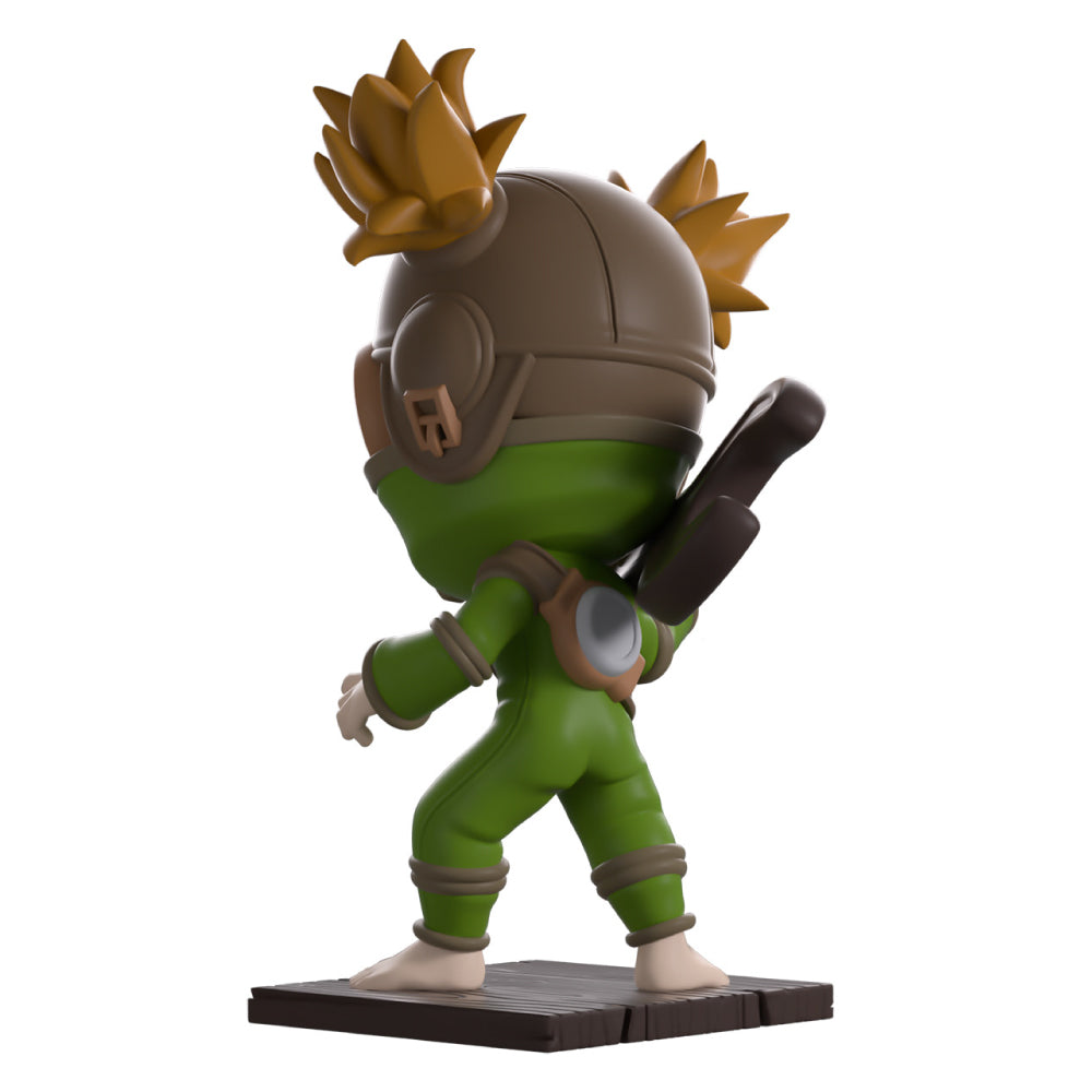 全身を覆うグリーンのスーツを身にまとい、右肩には大きなレンチを担いだ姿が印象的なフィギュアです。